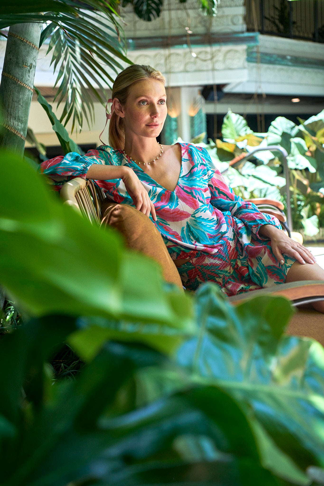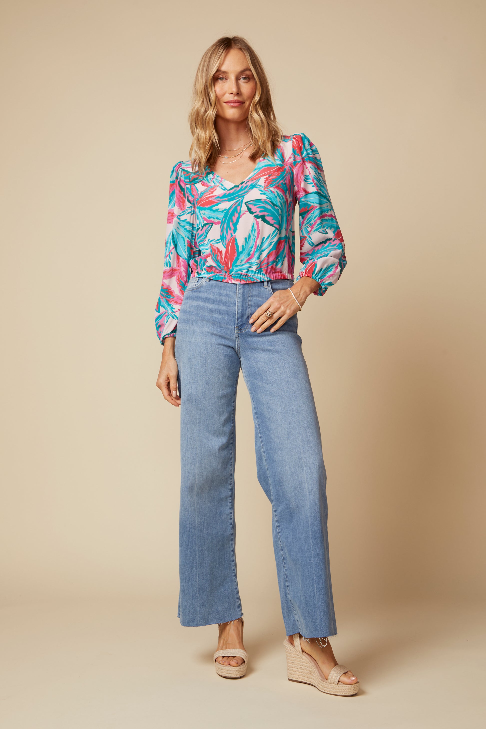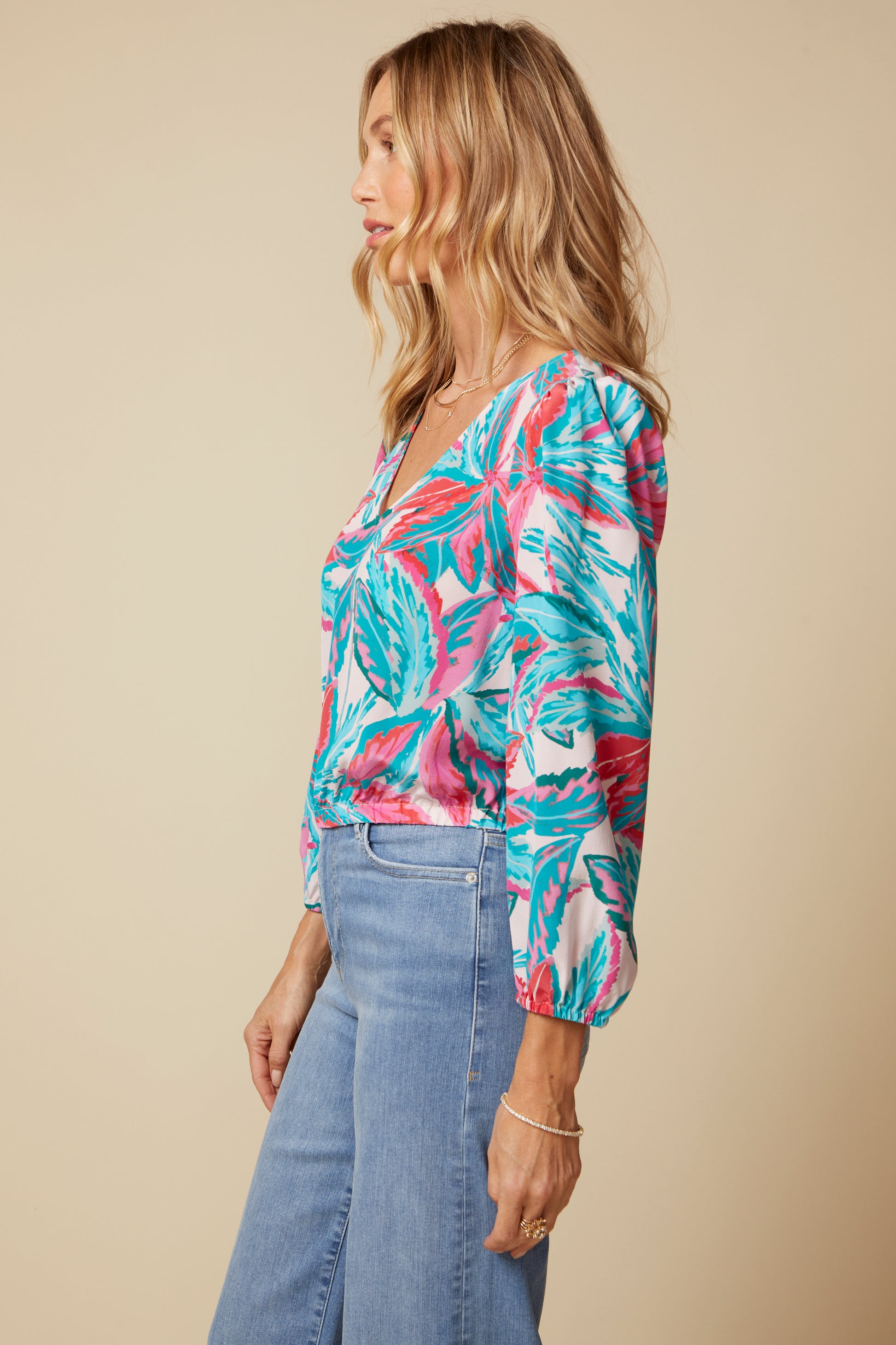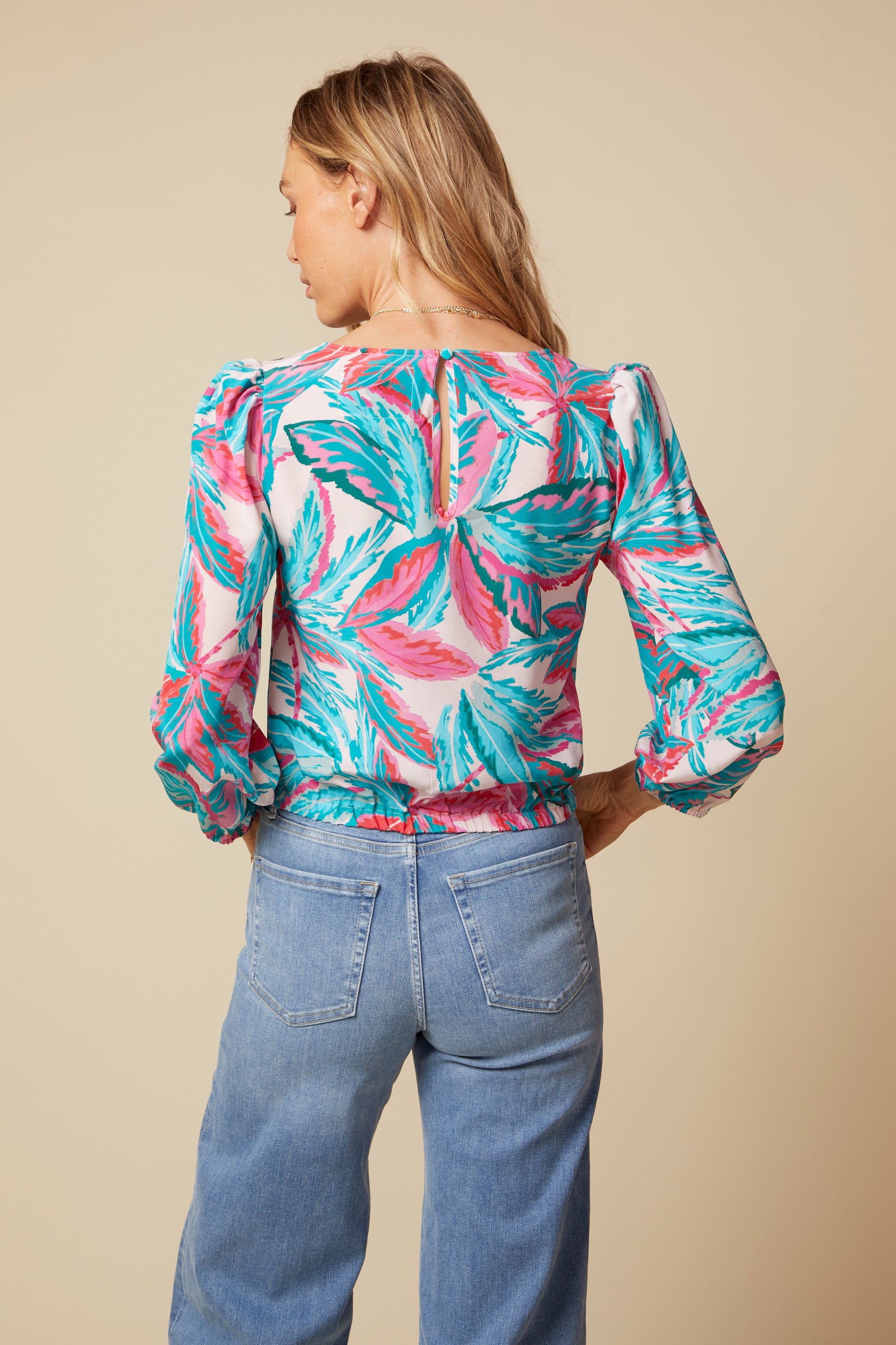 With a Plunging Neckline, Subtle Blouson Sleeve, Keyhole Button Back Neck and a Lightly Gathered Waistline, the Angés Top Lifts Your Spirits. Our Mallorca Print in 100% Washed Silk Makes This Top Even More Unique. Pair Her Back to Either the Sophie Mini Skirt or Simone Maxi Skirt in Matching Mallorca Print or Back to Jeans and Heels. Angés Will Liven Up your Closet.