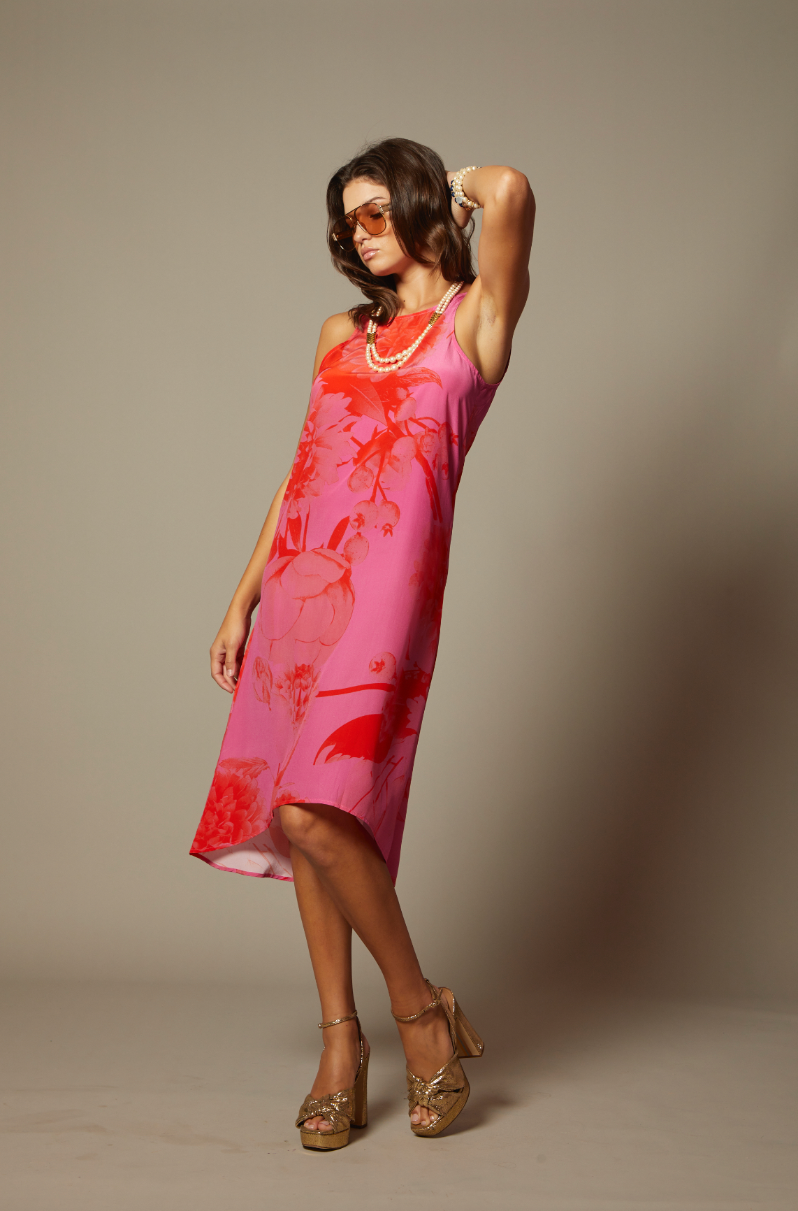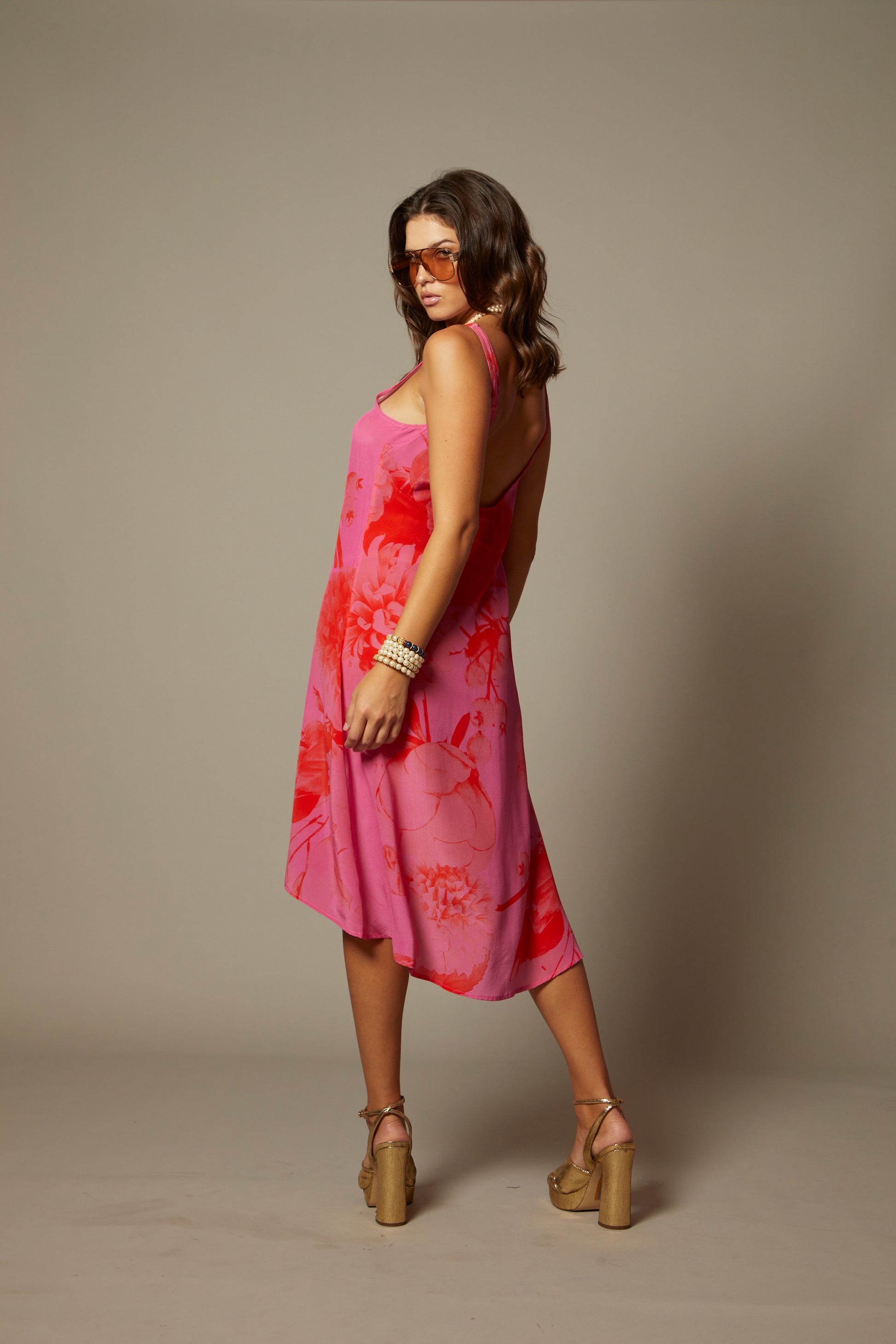 THE AMANDA HI LO SILK MIDI DRESS IN MARBELLA FLORAL PRINT