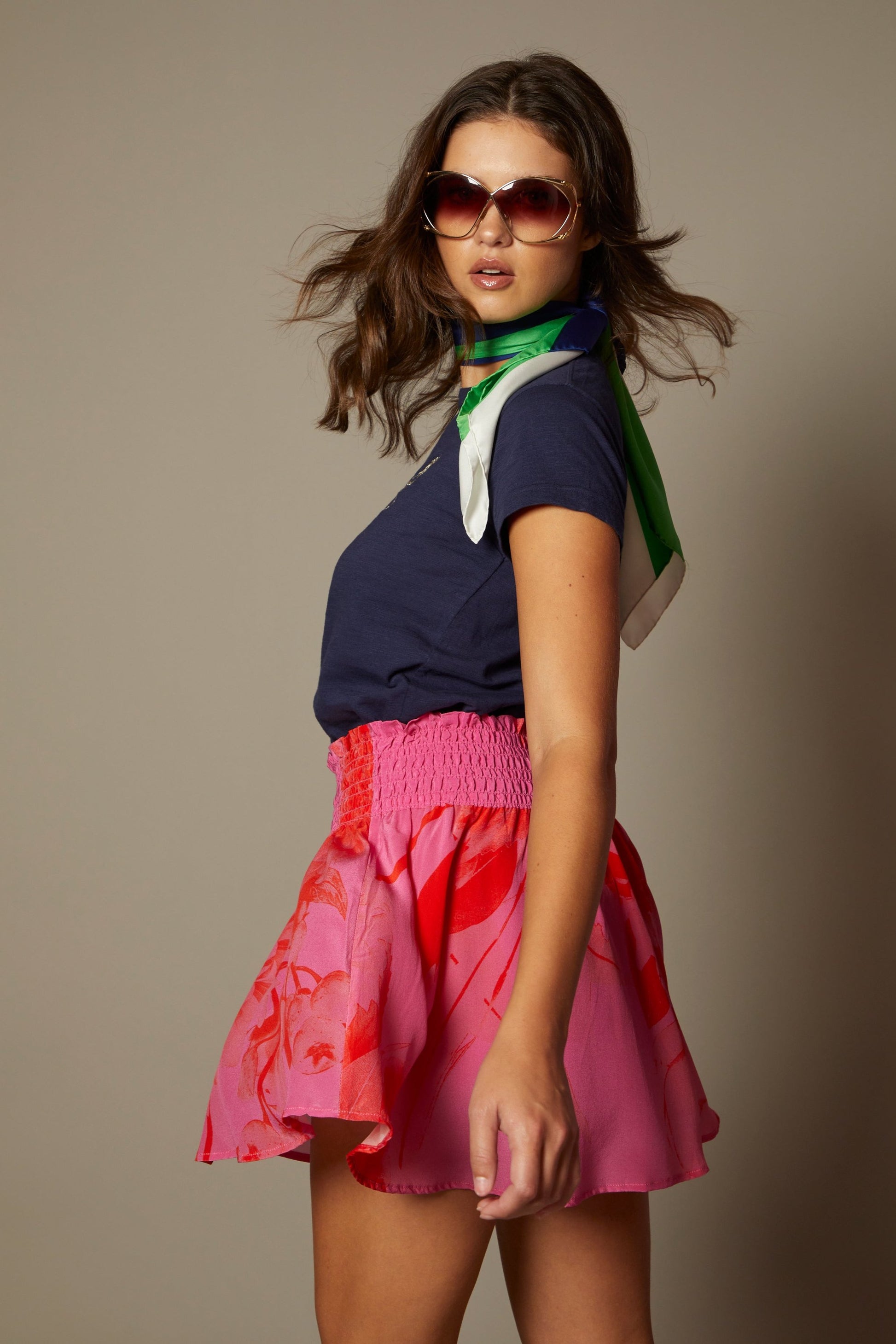 THE ISABEL SILK MINI SKIRT IN MARBELLA FLORAL PRINT