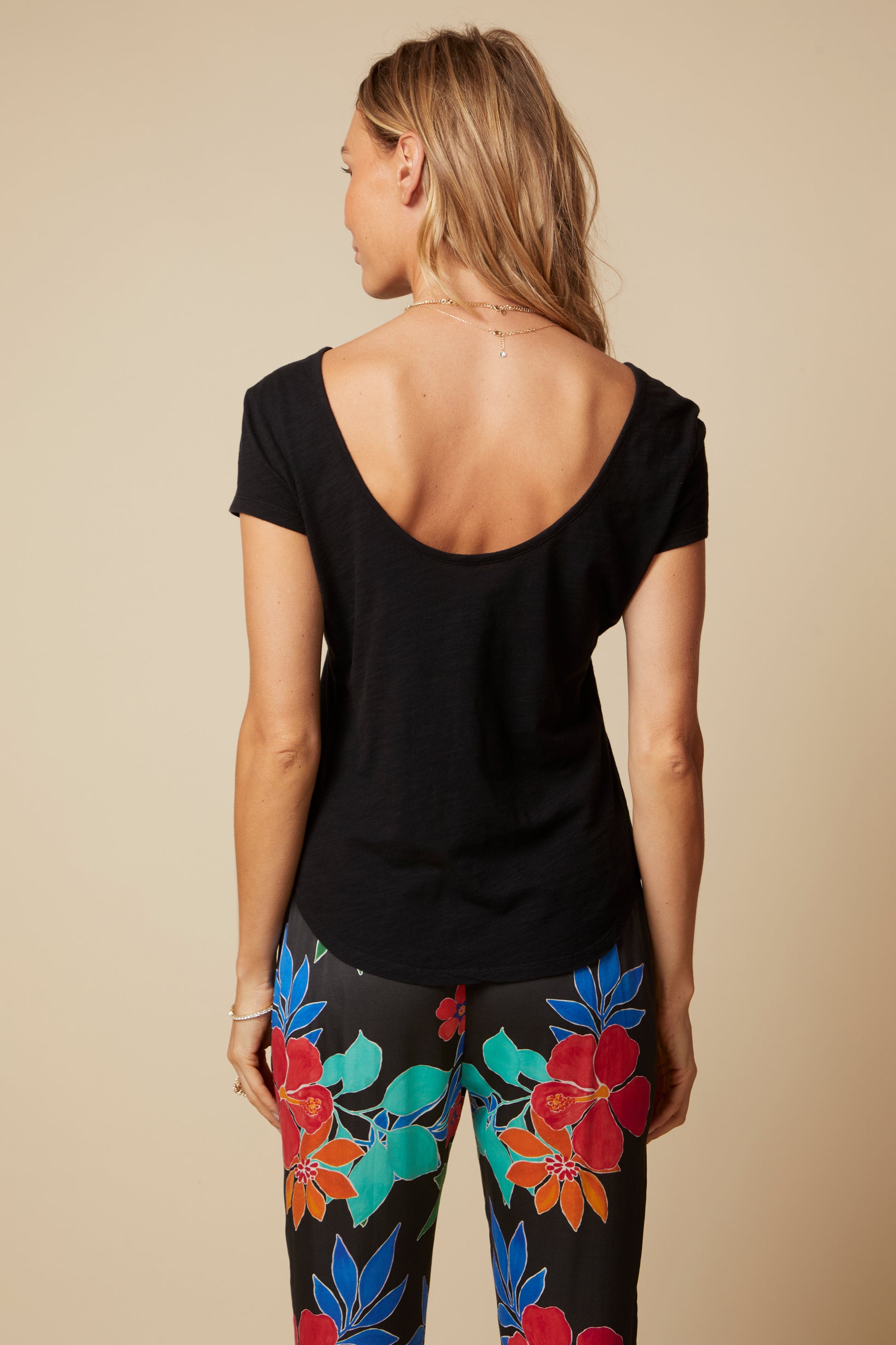 The Lara is the Little Sister That Never Lets You Down. She is Back to Front, Two Tees in One, Short Sleeved, with a Subtle Shirttail Hem. In a Light and Lofty 100% Cotton Slub Jersey, Tee Shirt Days Have Never Been More Well Styled. You Can Wear the Plunging Scoop Neckline in the Front or the Back, Depending on Your Mood or the Outfit. In Our Classic Vintage Black, The Lara is a Staple You Will Rely On Time and Again.