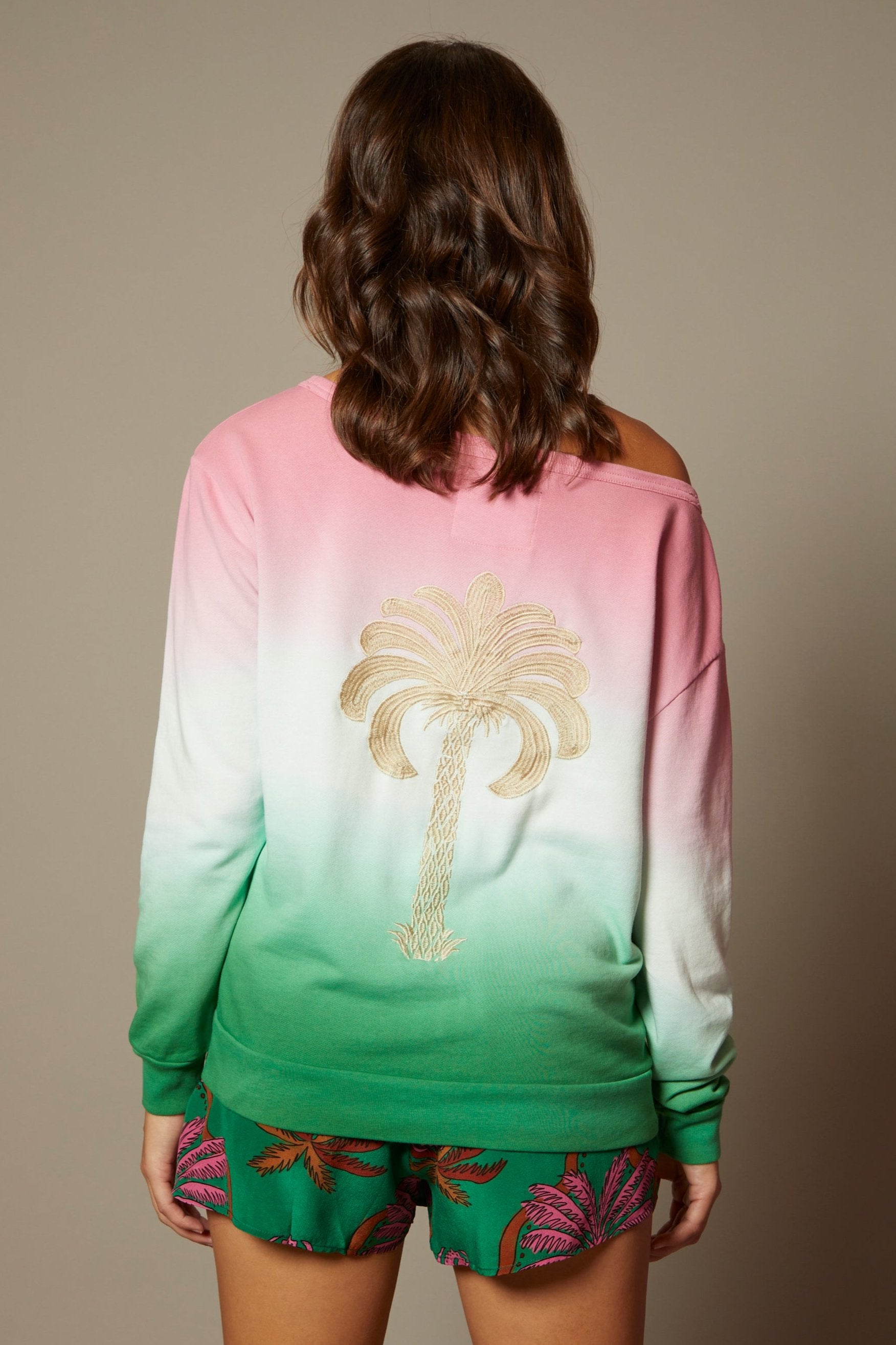 This Sexy Laurent Sweatshirt Gives You The Comfort Of A Cozy Pullover While Maintaining A Flirty Disposition. Pull It Off The Shoulder And Push Your Sleeves Up, You Are Set For Whatever Comes Your Way. Our 100% Cotton French Terry Has Been Washed To Perfection, The Softness Is Sublime. The St. Barts Ombre Dye Technique Elevates This Exclusive Style, Our Gold Logo And Palm Tree Embroidery Lend Heritage And Legacy.