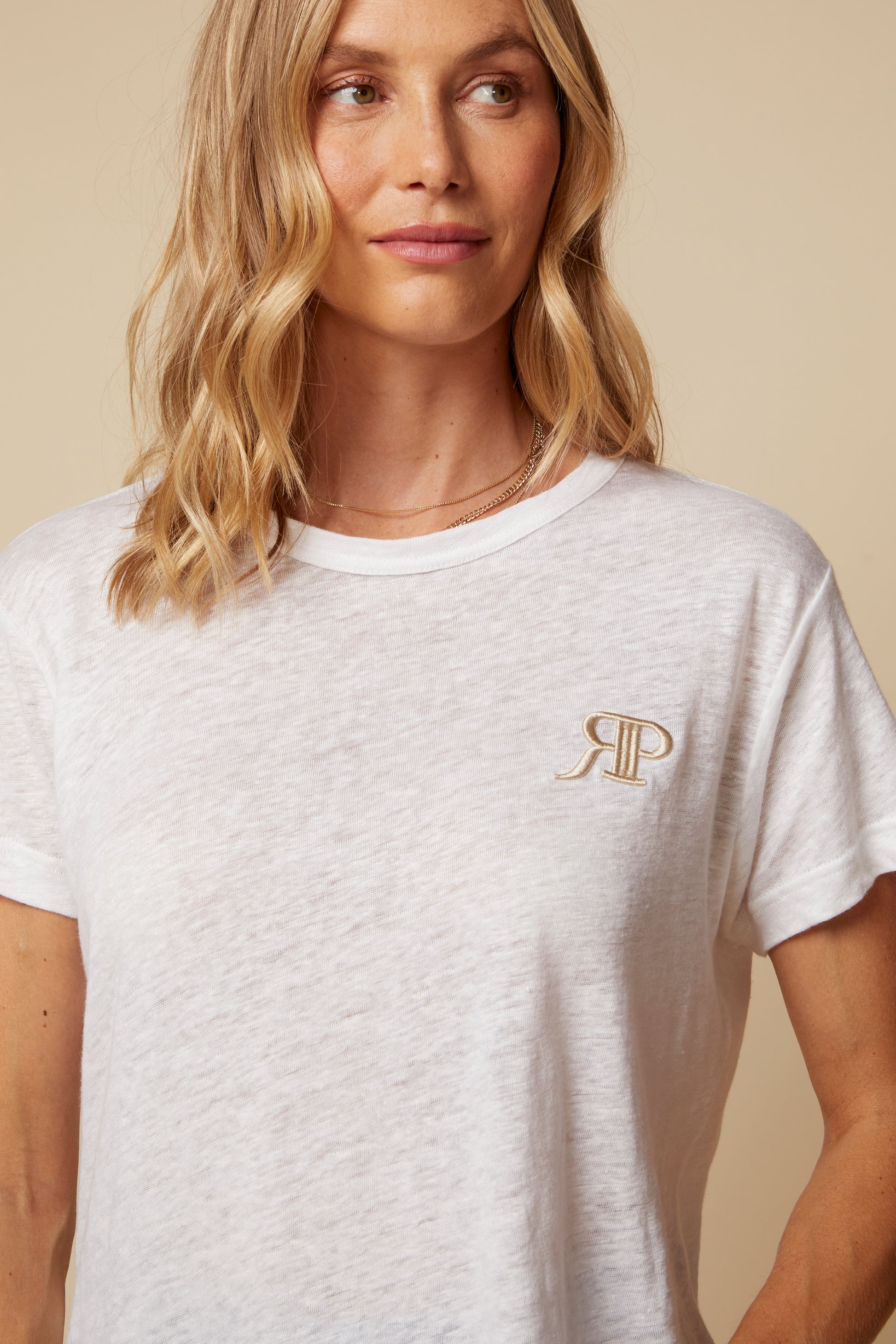 Dress Up Any Pair Of Jeans, Set Off A Pair Of Silk Shorts With A Half Tuck. Either Way, You Will Shine, Our 100% Linen Jersey Elevates This Essential White Tee, While Our Signature Gold RP Logo Embroidery Lends Heritage And Legacy To This Forever Classic.
