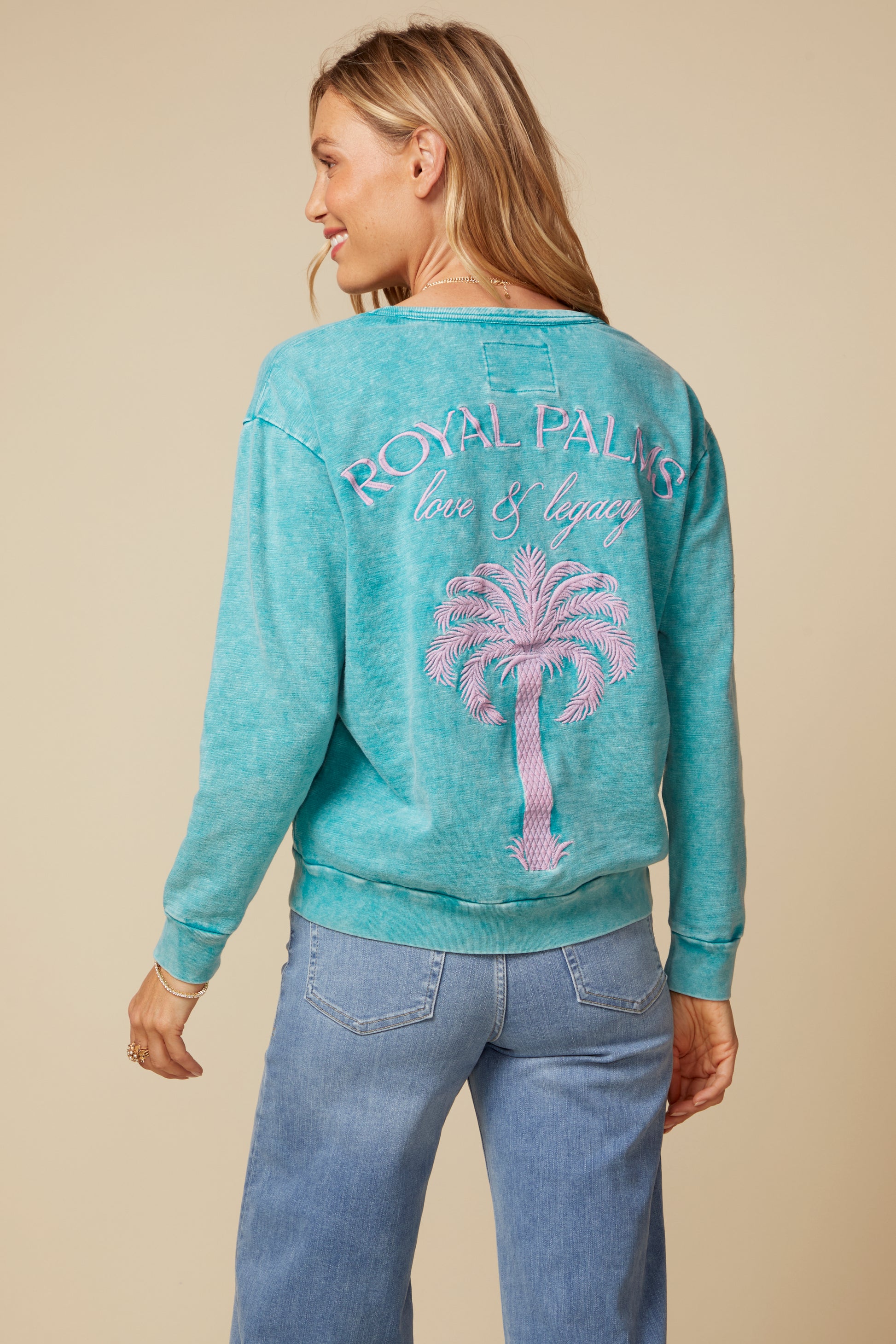The Madison is the One You Bring Home to Mom, Your Soulmate. She is Relaxed and Soft, with Heritage, Royal Palms love & legacy Embroidery and a Vintage Inspired Stone Wash, It Doesn’t Get Dreamier Than The Madison. Featuring a Crew Neck, Banded Bottom and Long Sleeves, This Easy Fit Pullover Will Quickly Become Your Forever Favorite Sweatshirt.