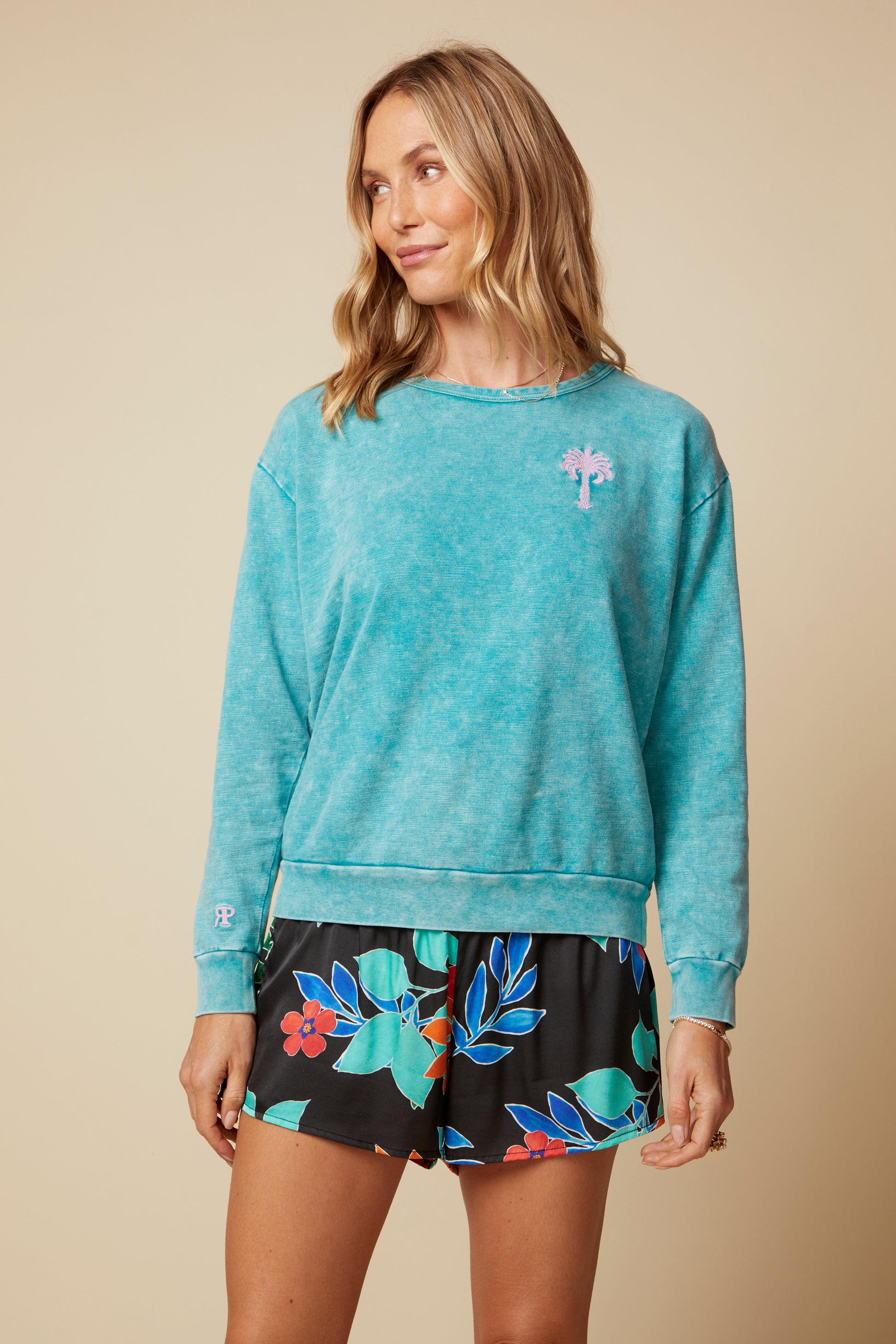 THE MADISON PULLOVER SWEATSHIRT IN COTTON SLUB FRENCH TERRY IN WASHED TEAL
