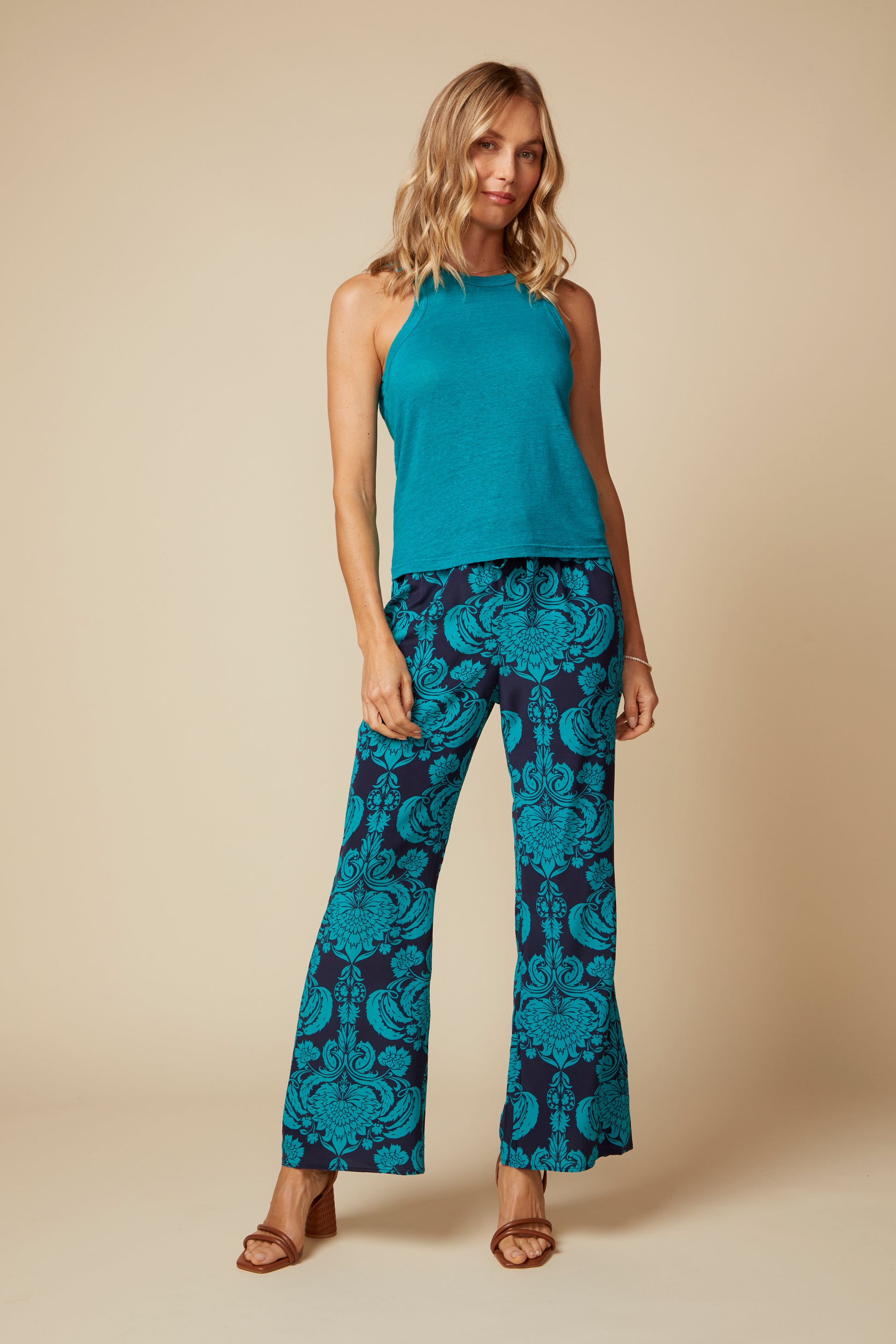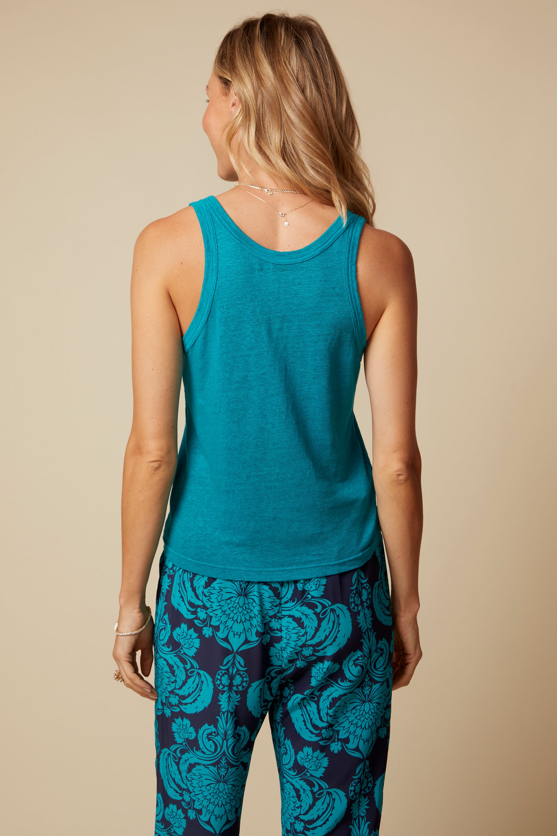 THE MOLLY TANK IN LINEN JERSEY IN TEAL - BACK TO FRONT