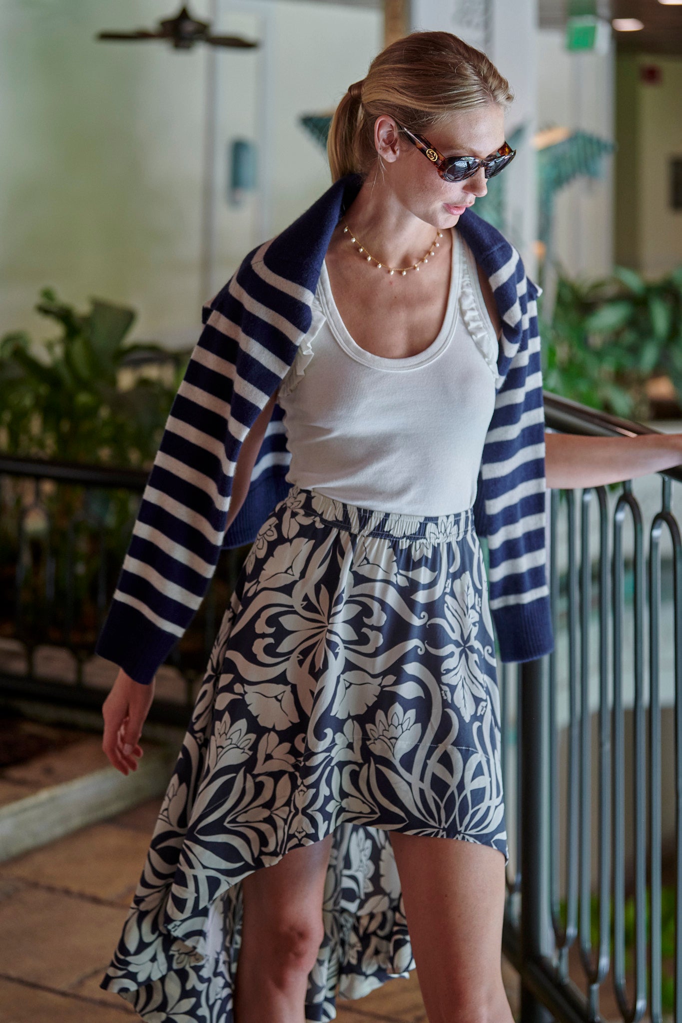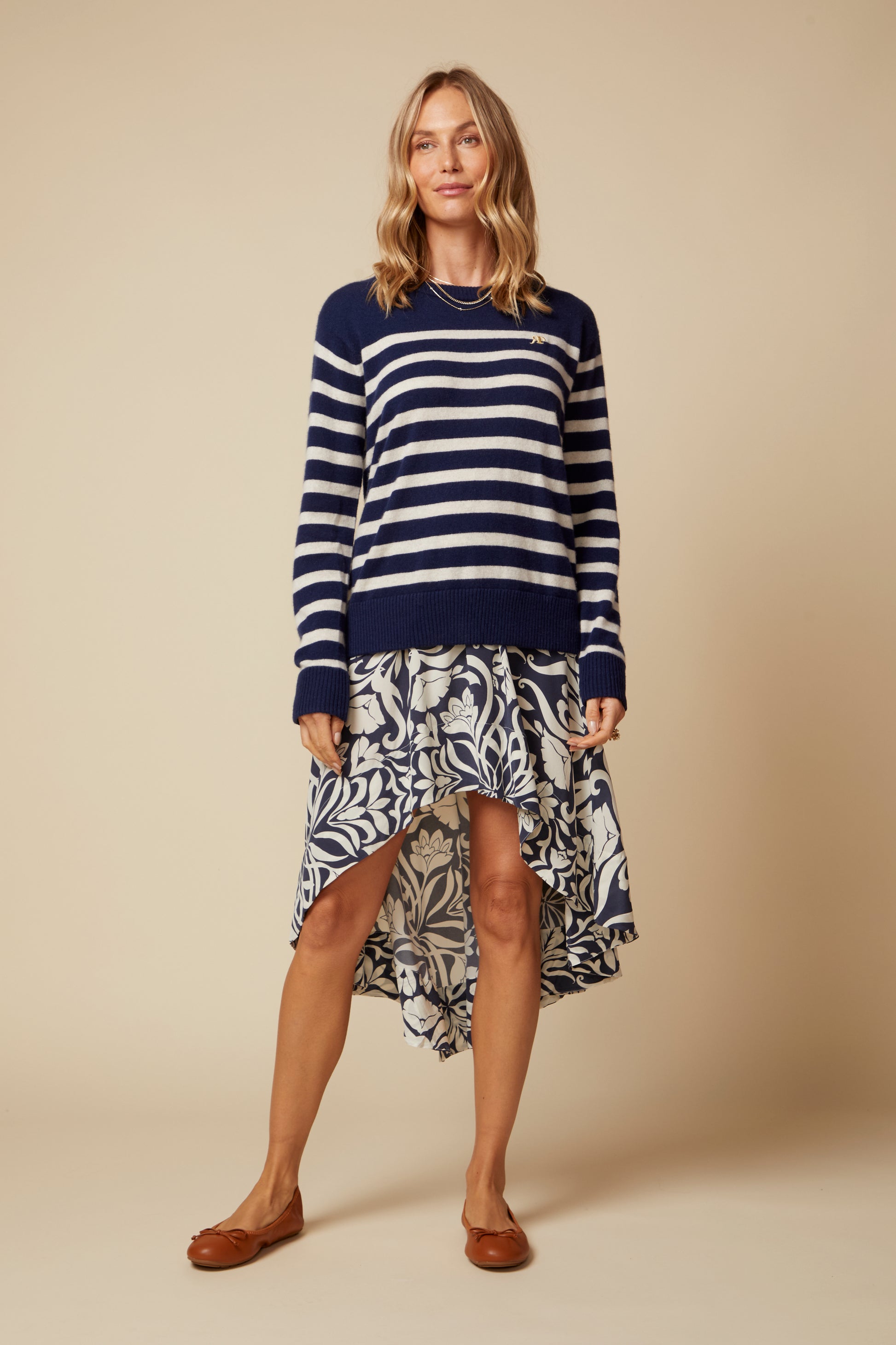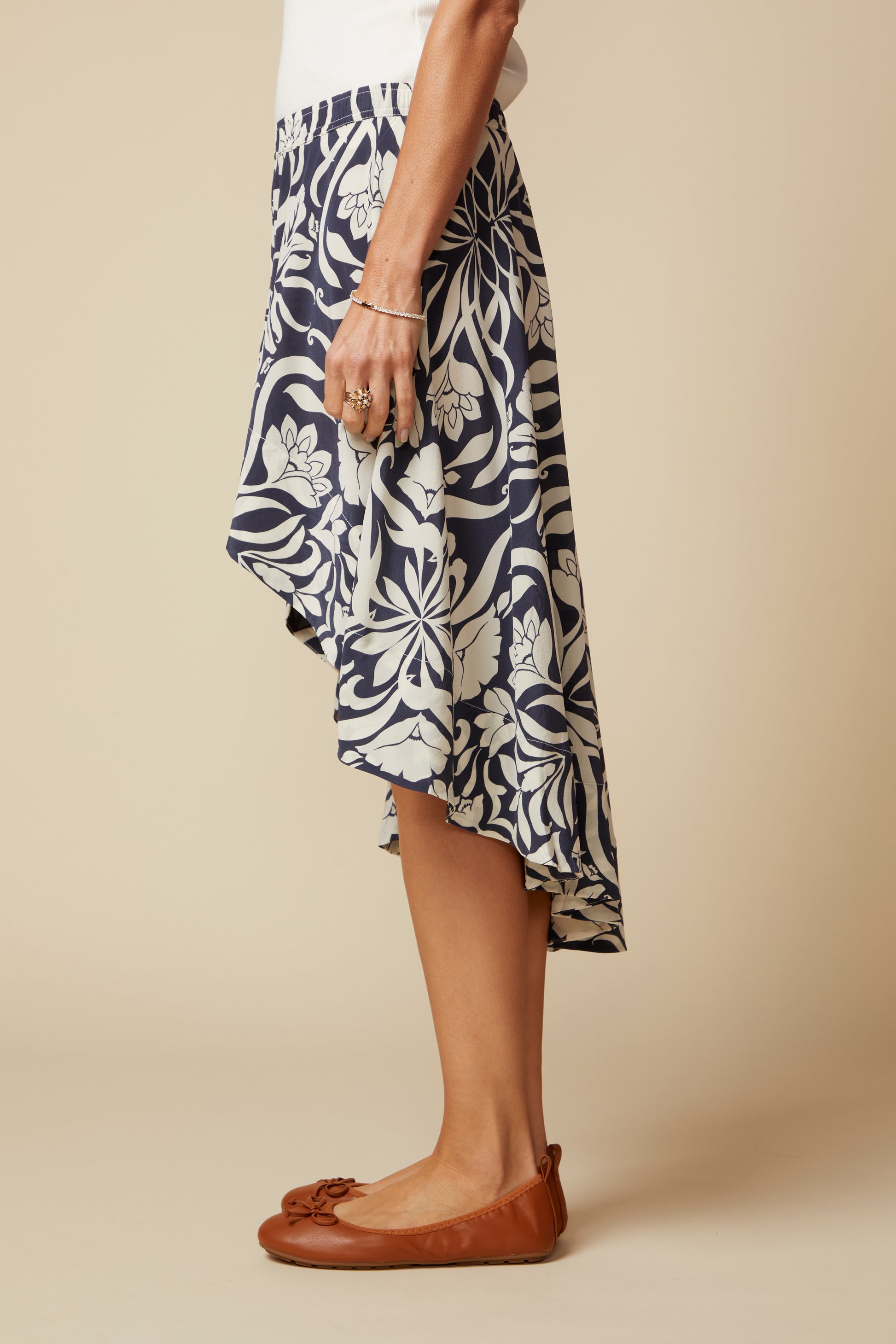 With Flounce and Flair, the Penelope Skirt In 100% Washed Silk will Make You Feel Like You Are Floating Through Your Day. Featuring A Flattering High Low Hemline, The Penelope Flows with Style. Inspired By the Mediterranean Coast, The Monte Carlo Print Adds Savoir-Faire to this Unique Style. The Penelope Skirt Can Be Dressed Up With The Dayna Cami in the Matching Print, or worn more casual-cute with a Rib Ella Ruffle Tank. Either Way The Penelope Skirt Will Draw An Audience.