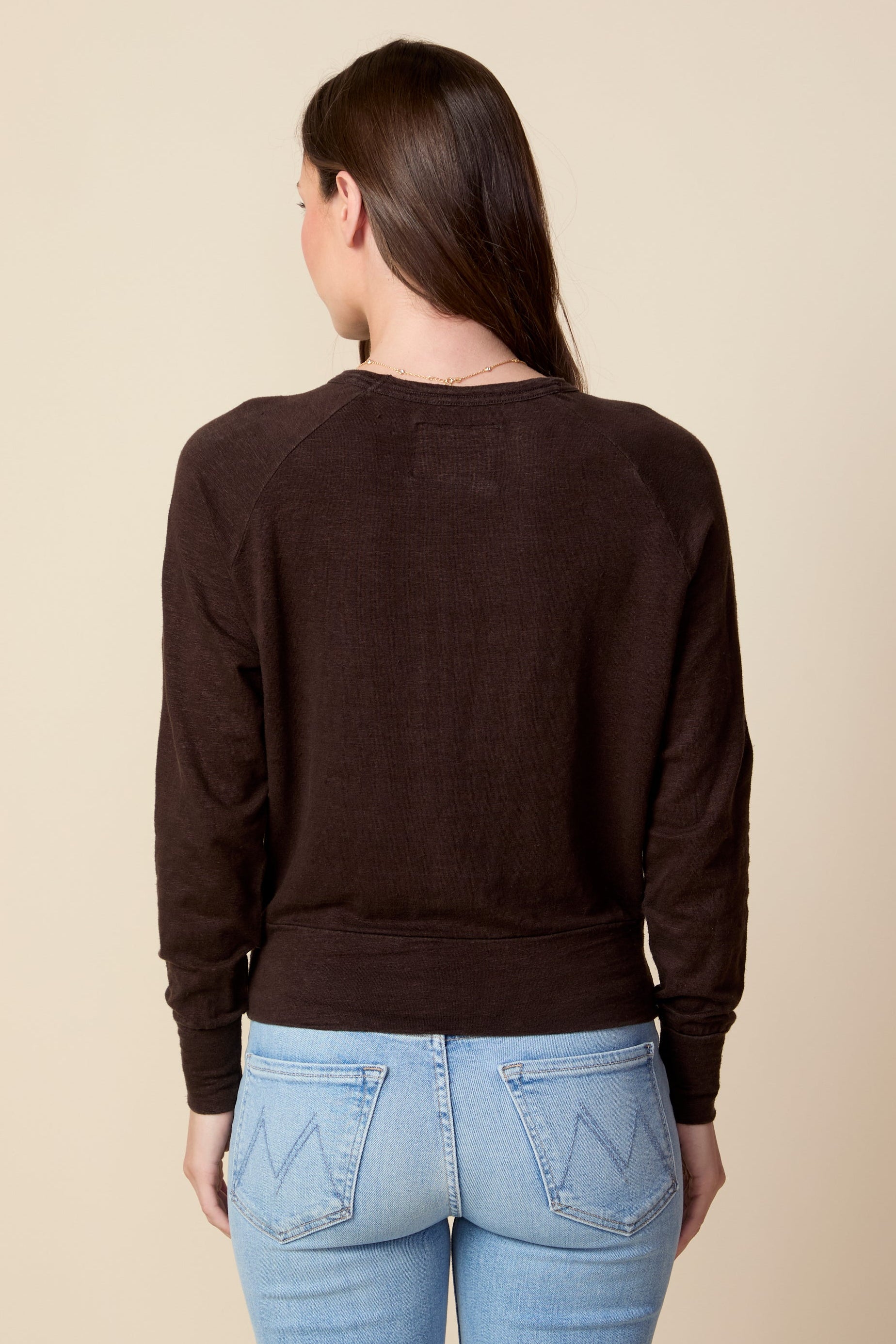 THE ROBBIE LONG SLEEVE RAGLAN TEE IN COFFEE BEAN BROWN